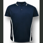 moisture removal microknit, snag resistant easy care fabric. Self fabric binding finishes neck and armholes, contrast side panels with back neck reflective tab for ear phones.